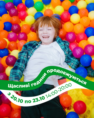 З 20 по 23 жовтня для дітей віком до 16 років – 6 годин безлімітних розваг за 600 грн 😍